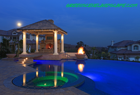 Picture flames dancing across the reflective stillness of a pool, an inviting walkway that leads you across water to a beckoning fireplace beyond, or a wall of water that glistens as it descends and then disappears behind a fiery